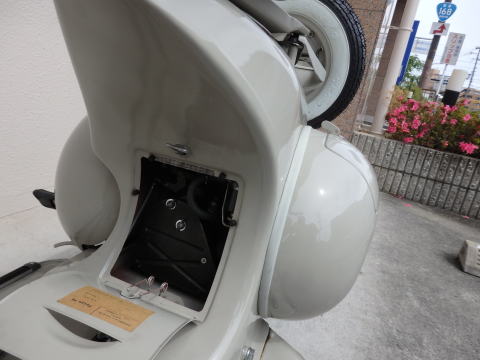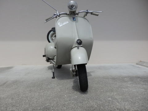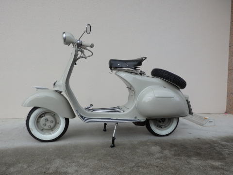 vespa150VL1 1954年式 最初期製造番号600番台の大変レアなVL1です。 南フランスで見つかり輸入した車体になります。 全塗装、完全剥離ブラスト後オリジナルカラーにウレタン塗装でラッカーみたいに仕上げてました。 エンジンオーバーホール、フレーム部品も最高品質品を使用した最高レベルのレストアをした ショールームコンデションのVL1になります。 予備タイヤステーはオリジナル使用になります。